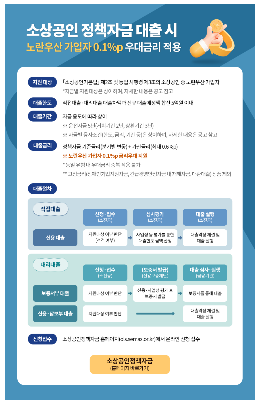 - 2023년 10월 1일 이후, 폐업, 퇴임, 노령 등의 이유로 공제금을 수령한 후 다시 노란우산공제에 재가입한 소기업과 소상공인에게는 재가입 장려금이 지원됩니다.